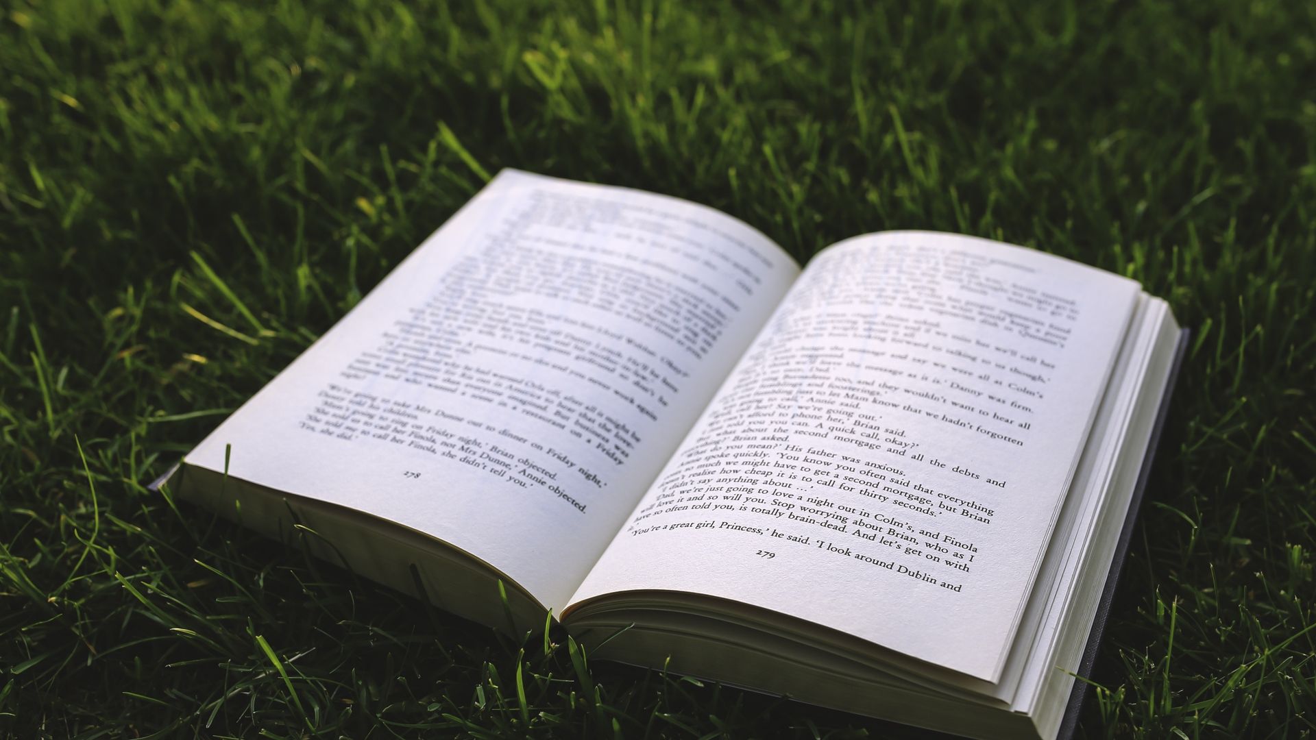 Ce fond d'écran HD (1920x1080) mêle poésie et nature : un livre ancien, aux pages épaisse et patinées, est entouré de touffes d'herbe émeraude aux textures détaillées. L'éclairage doux souligne les ombrages et les reflets lumineux sur les feuilles, créant une ambiance apaisante. Idéal pour un bureau ou une décoration bohème, ce wallpaper évoque la sérénité d'un jardin secret. Parfait pour amoureux de la littérature et de la nature, ce fond d'écran au style artistique sublime votre écran avec élégance.
