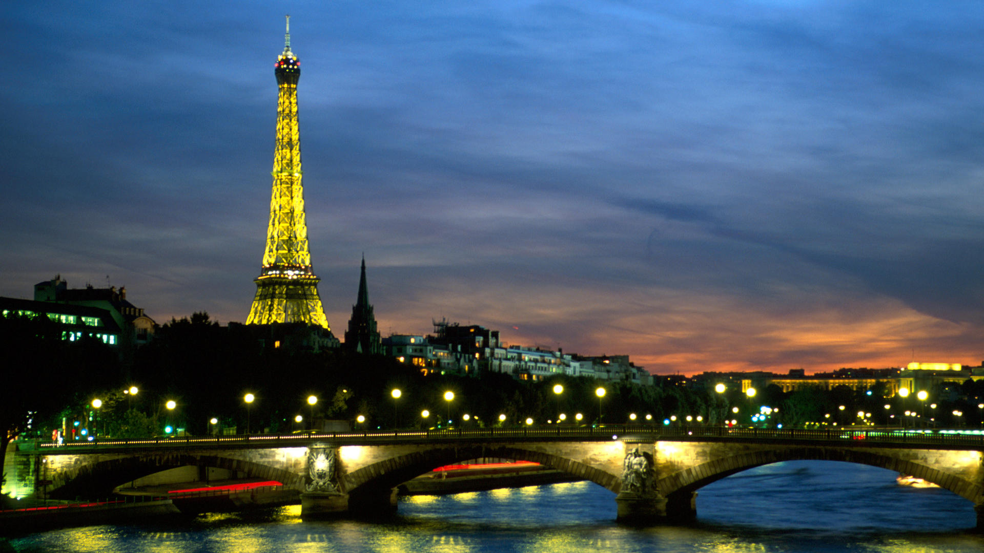 Ce fond d'écran HD capture la majesté de la tour Eiffel éclairée de mille feux, reflétée dans les eaux calmes de la Seine. Les lumières scintillantes se mêlent à la ville endormie, évoquant l'âme romantique de Paris. Résolution 1920x1080, ce wallpaper en thématique France offre un cadrage saisissant pour aménager votre écran avec élégance. Idéal pour les amateurs de voyages et de paysages urbains, il célèbre l'archétype parisien dans une ambiance mystérieuse. Raffiné et immersif, il transforme votre espace numérique en une