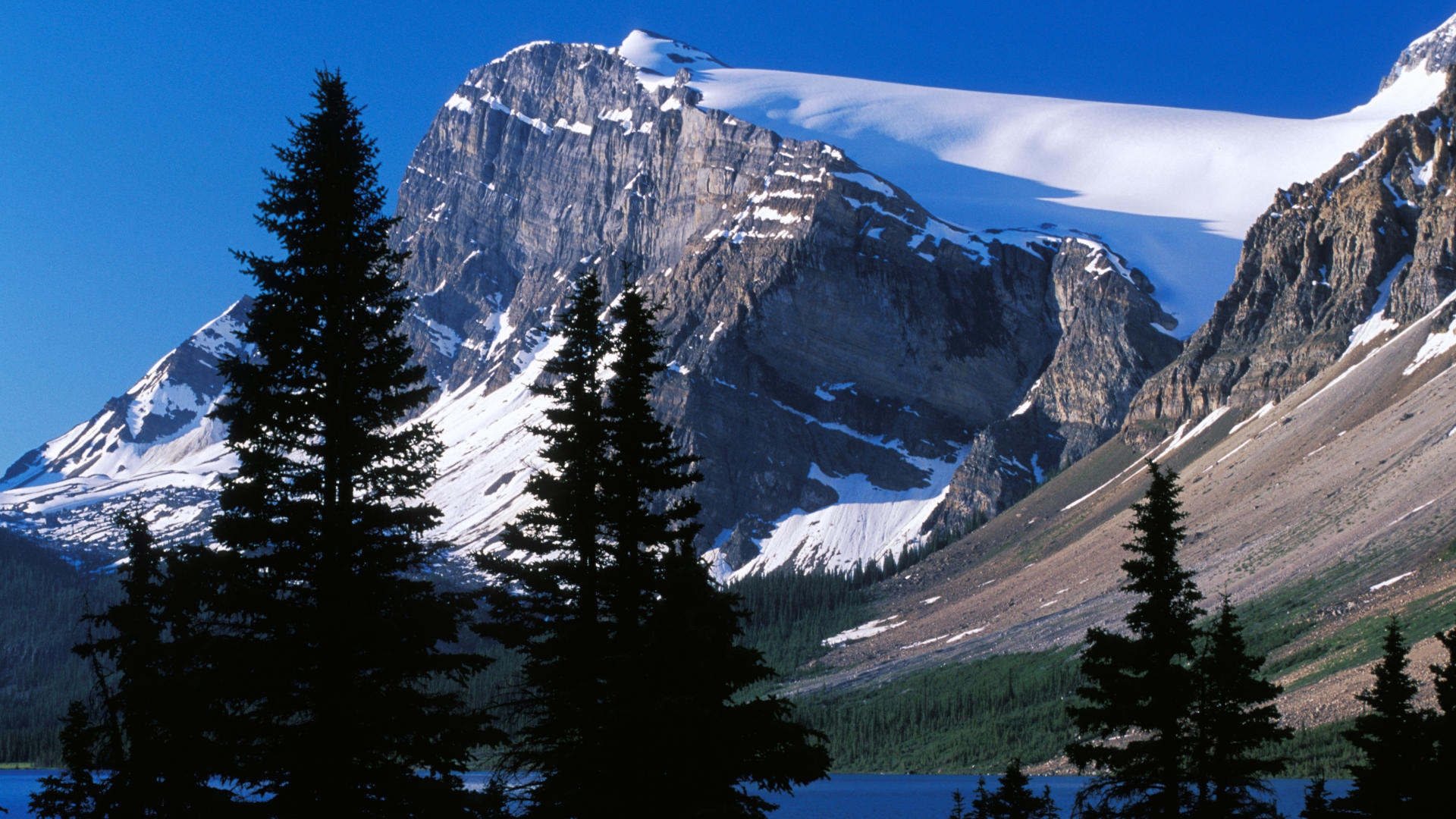 Ce fond d'écran HD 1920x1080 capture l'âme sauvage du Canada : une crête rocheuse du parc national de Banff s'élance vers un ciel limpide, ses arêtes couvertes de neige scintillante contrastant avec la forêt de conifères à ses pieds. Le soleil de l'Alberta baigne les versants d'une lumière dorée, révélant chaque détail des éboulis et des glaciers suspendus. Ce wallpaper voyage invite à respirer l'air pur des Rocheuses, idéal pour transformer votre écran en fenêtre sur l'Amérique du Nord sauvage.
