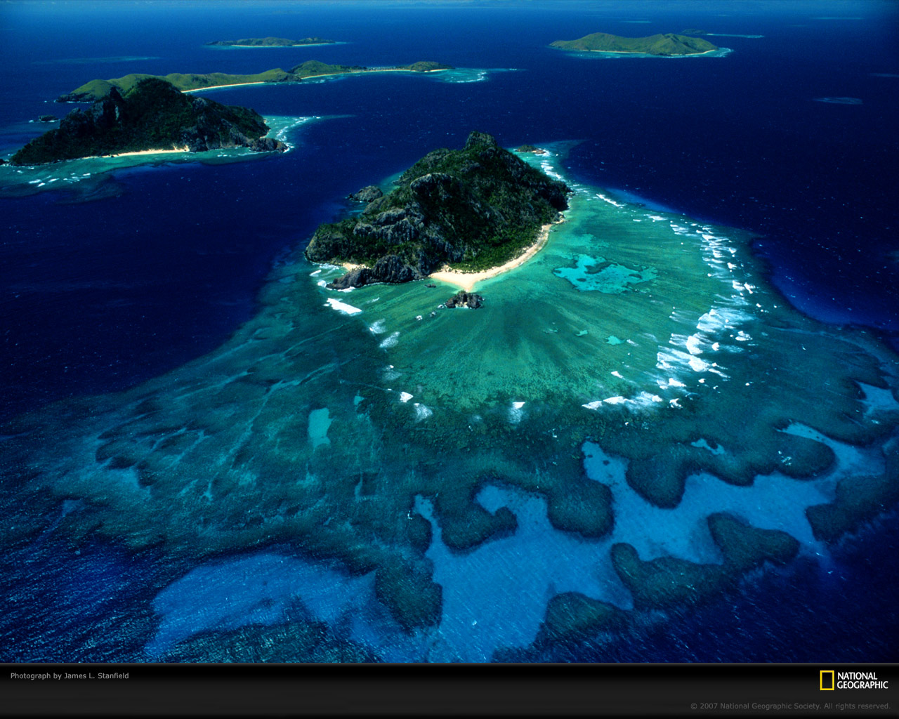 Fond d'écran Iles Fidji en HD 1280x1024 : un wallpaper paradisiaque saisit du ciel. Lagon turquoise scintillant, plages de corail bordées de cocotiers, îlots volcaniques émerveillent. Téléchargez cette vue aérienne exclusive pour voyager sans quitter votre écran, la résolution parfaite illumine vos journées.